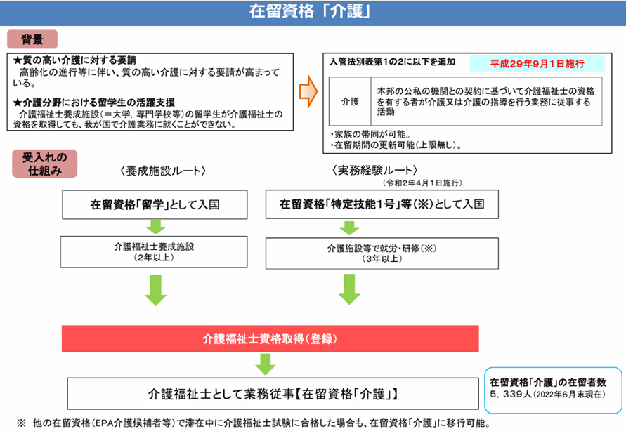 (出典:厚生労働省資料HP介護資格を取得した外国人の方に対する在留資格「介護」の付与について)