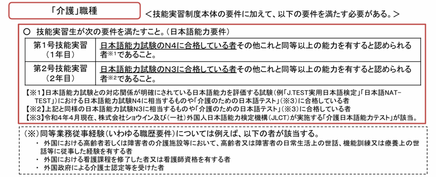 (出典:厚生労働省 技能実習「介護」における固有要件について)